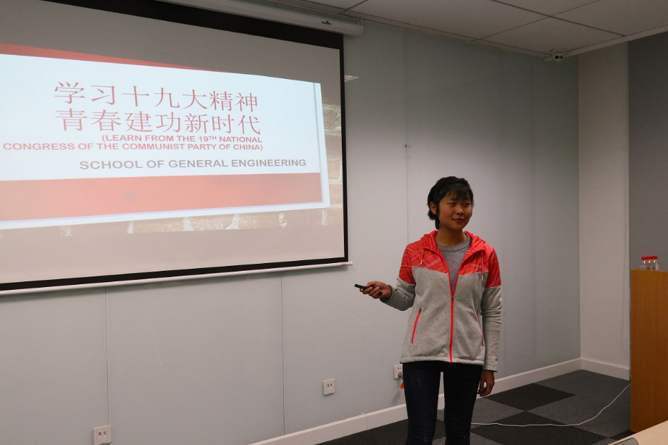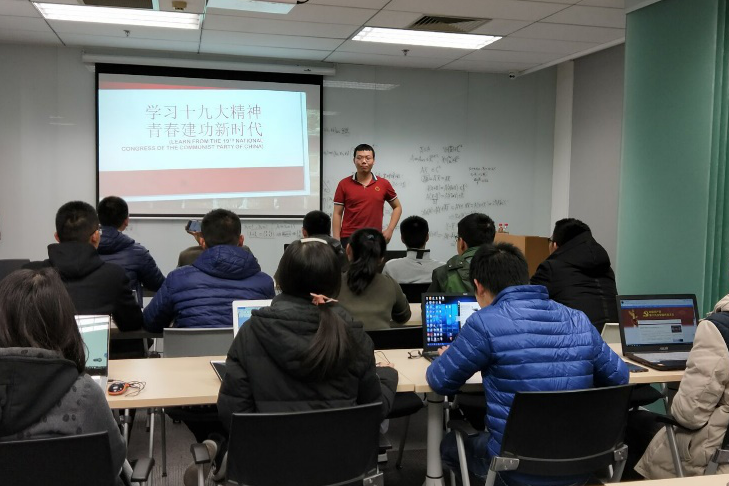 为深入学习贯彻落实党的十九大精神,促进青年团员了解党最新的方针政策,北航国际通用工程学院组织173551团支部与173571团支部分别于11月12日和11月14日晚在新主楼D1120教室进行了 “学习十九大精神,青春建功新时代”的主题宣讲讨论活动。51班团支部书记刘雨荷、71班团支部书记岳俊辰做宣讲发言,国通学院全体团员参加了此次活动。