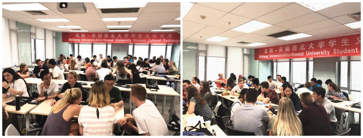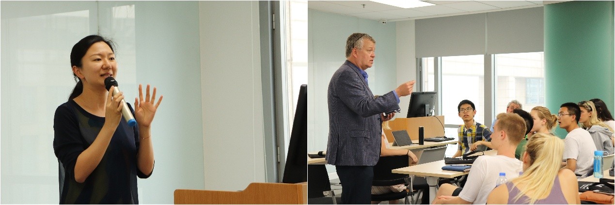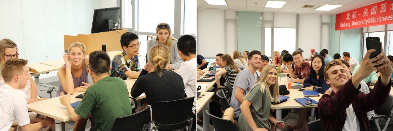 赵秋迪老师首先代表国际通用工程学院对美国西北大学师生代表团的来访表示了热烈的欢迎,并向来访教授及学生介绍了北航以及国际通用工程学院在人才培养、通识教育、学生科技文艺、国际文化交流等方面的开展情况。Nelson 教授也简要介绍了西北大学商学院的基本情况及此次来访北航进行跨文化参观交流的背景与意义。