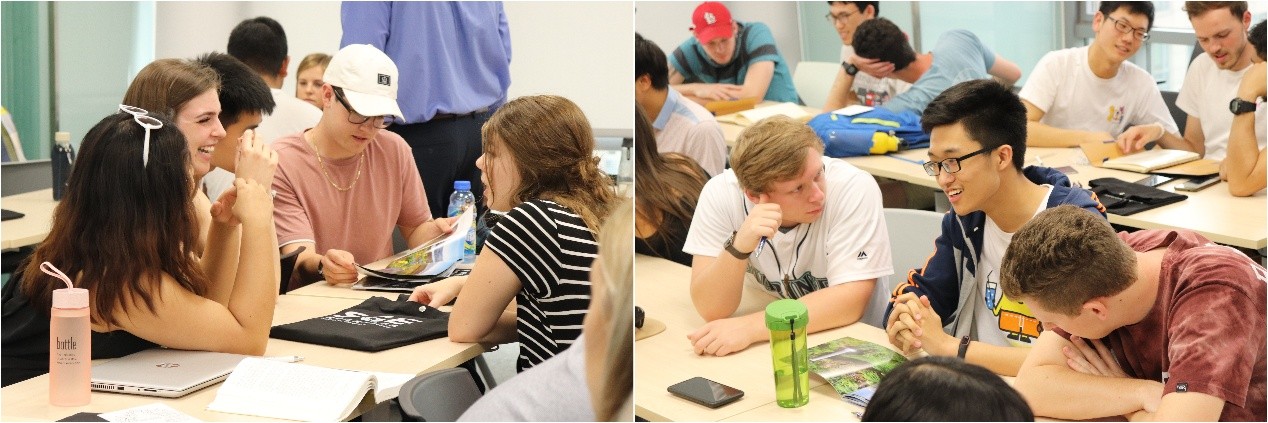 随后,双方学生围绕中美大学通识教育、中美大学生的学习方法与技巧、中美大学生工作及实习等三个话题,分小组进行了友好深入的交流和讨论。此次交流座谈会在热烈的气氛中持续了近两小时,会后双方同学互留了社交联系方式并进行友好道别。国通学院参会学生纷纷表示,通过此次活动不仅结交了国际伙伴,也开阔了眼界,加深了自己对美国大学教育和人才培养的理解,对未来学业深造和职业选择都大有裨益,并进一步表达了对日后学院此类跨文化交流活动的期待和支持。会后,部分国通同学陪同西北大学师生参观了校园及文化纪念品展览馆。