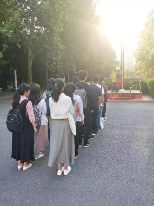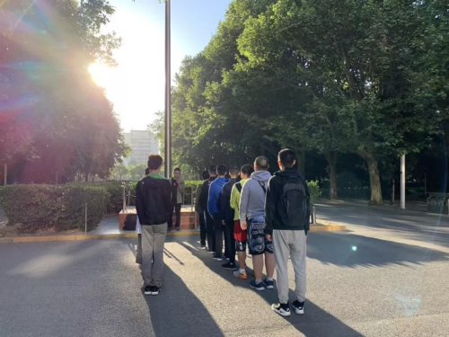 升旗任务主要在北航的学院路校区举行。这里既是北航人最初记忆承载,又是北航空天报国精神传承的地方。在这里每天清晨我们庄严地举行升旗仪式,当团支书发表讲话之后,同学们注视着国旗缓缓升起。这时候北航精神与爱国精神在交融,同学内心之中既激发出了北航学生的自豪感与责任感,又迸发出了爱国热情。