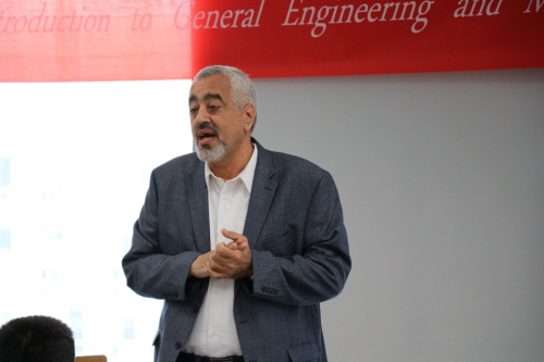 接着,Kamran教授介绍了《通用工程及多学科设计导论》的概况。Kamran教授首先对本年度课程的顺利完成表达了祝贺与感谢。之后,Kamran教授简要重申了该课程的特色与理念。他强调,该课程的特色在于其模拟了真实的工业设计流程,每个项目都具有多学科甚至跨学科属性。团队合作、项目管理、客户沟通是学生们顺利完成项目设计的关键所在。
