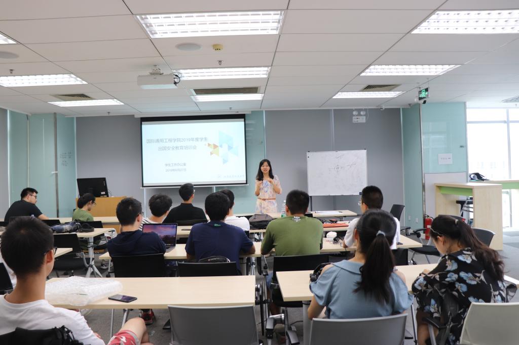 2019年6月27日下午,国际通用工程学院学生出国(境)安全教育培训会在新主楼D1120召开,会议由学院学生发展支持中心杨颖主持,学生工作负责人赵秋迪老师主讲,共有30多名即将参加各类暑期海外交流学习的学生参加了本次安全教育培训。
