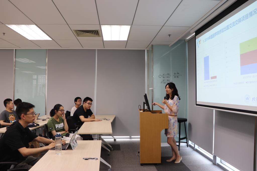 会上,赵秋迪老师首先介绍了2019年学院学生参加各类海外交流交换项目的基本情况。同去年相比,我院参加出国交流交换项目的人数显著增加,其中8人参加学校“远航”计划暑期项目,11人参加国际暑期学校支持计划,另有部分同学参加到赴香港书院交流项目、“中日樱花科技交流计划”、英国GCSP协作实验室竞赛活动等。