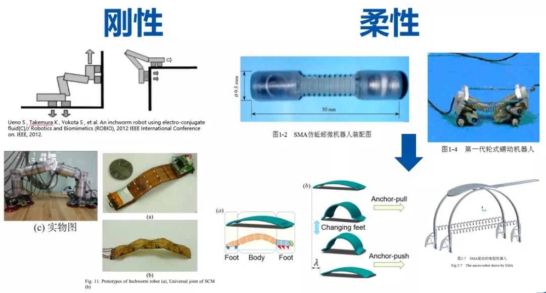 目前市场上已有的爬行仿生机器人主要分为刚性和柔性两大类。在国际通用工程学院的机械原理课上,本学生团队受到启发,参考前人的研究成果,基于自身经历,设计一种模仿尺蠖爬行的软体机器人。在史震云老师指导的实验室中,学生们接触到了以硅胶为躯干、以形状记忆合金弹簧为肌肉的仿生机器人概念,并以此为思路,在SolidWorks上设计出第一代样机,对其进行了大量的仿真分析。