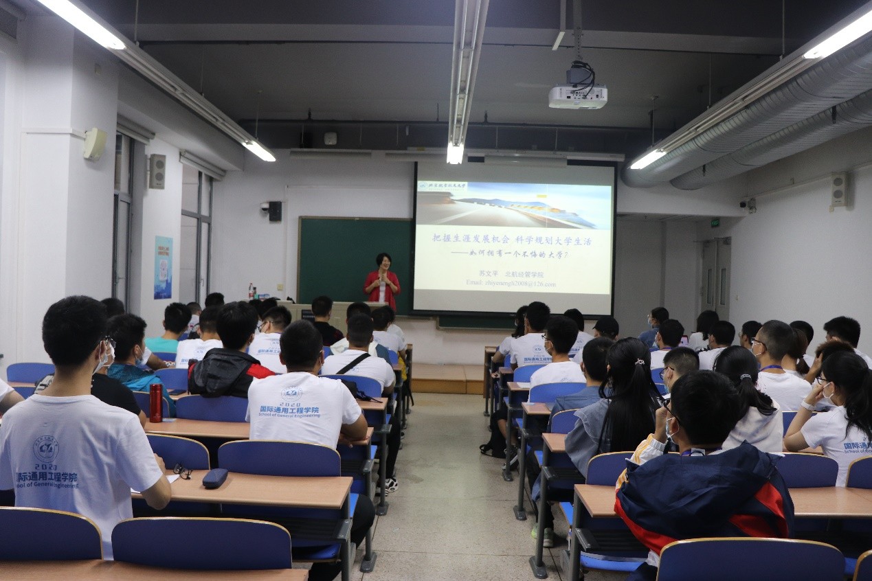 9月17日,国通学院举办以“把握生涯发展机会,科学规划大学生活”为主题的讲座,此次讲座是新生入学教育的重要一环,特邀北航经管学院的苏文平老师作为主讲嘉宾,2020级全体新生参加。