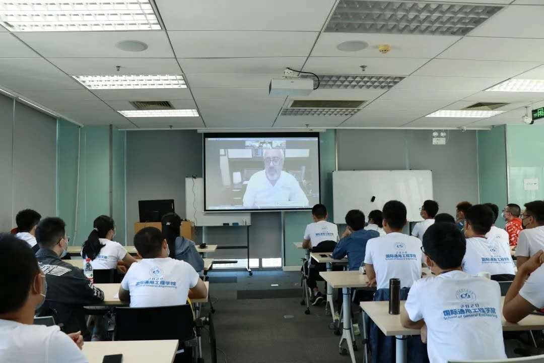 9月17日上午,国际通用工程学院在新主楼D1101召开了“2020级新生开学典礼”,典礼全程用英文进行。文东升院长首先代表国通学院对各位新生的到来表示欢迎和祝贺,并向新生介绍了国通学院I4L的培养理念,即International(国际视野)、Interdisciplinary(专通融合)、Innovation(创新开放)、Integration(知行合一)、Leadership(领导领军)。目前身处海外的Harold教授及Kamran教授通过视频连线的方式,代表国际教师致辞,介绍了国通国际化的教学环境和教学模式,鼓励大一新生在国通努力学习和实践,不断夯实专业基础,全面提升学习能力。最后,学院2020级新生代表岳硕宇同学进行了发言,表达了同学们对大学生活的向往和努力学习的决心。