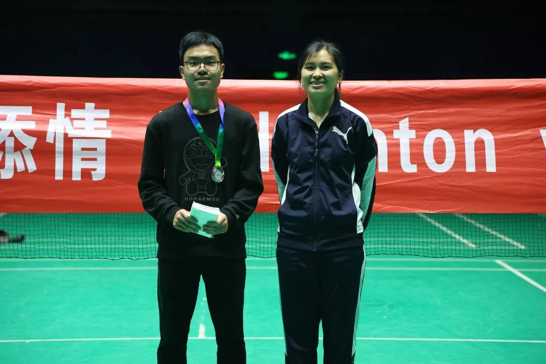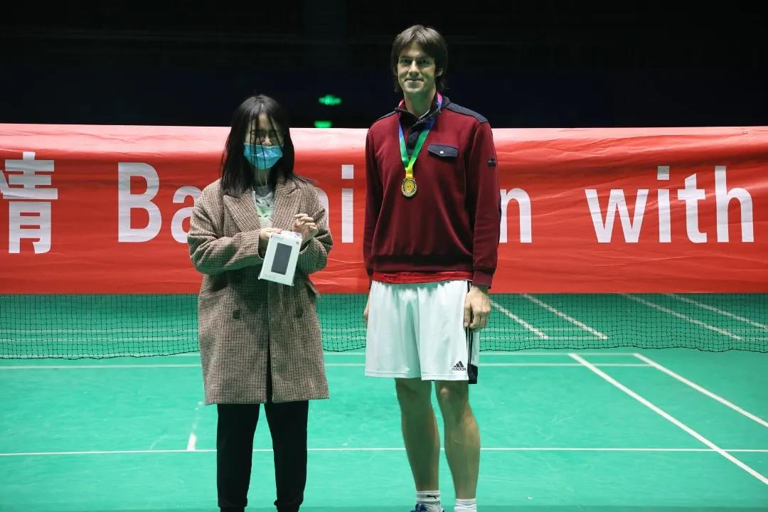 在决赛期间,余宸锌同学以扎实的球技打出了不少角度刁钻、球速十足的好球;小塞老师延续了先前的球风,或悠闲轻击、或严阵以待,轻松应对、游刃有余。最终Sebastain老师凭借稳健的球路取得了最终的胜利。赛后,孙小倩老师和小塞老师为优胜者们颁奖,羽毛球赛也在全体选手、观众和工作人员的合影中圆满落幕。