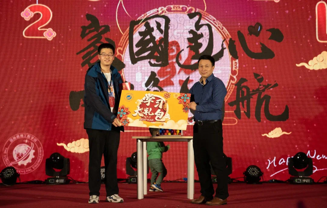 最后,文东升院长发表新年致辞。文院长强调,2020年全院师生心手相连,一方面做好疫情防控,一方面凝心聚力,实现学院的新发展,在教学、科研、学生工作等方面取得了丰硕成果,顺利完成首批研究生招生工作,实现与北航国际交叉科学研究院的合并,未来将继续探索4+4的本博一体化育人模式。最后,文院长送出新年祝福,愿全院同学志存高远,砥砺前行,努力书写无愧于时代的华彩篇章。