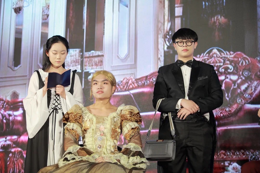 203511班的英文戏剧《The importance of being earnest》幽默中夹杂讽刺,他们英语功底与表演实力着实让人眼前一亮。