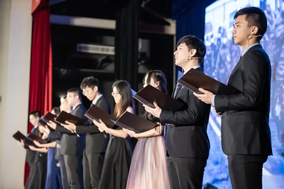 王宇阳和包润远用一首《不说再见·最初的梦想》作为送给毕业年级的礼物。我们的征途是星辰大海,我们将带着满满的行囊走向国际舞台。无论我们走得多远,国通团结和传承精神一直都在。