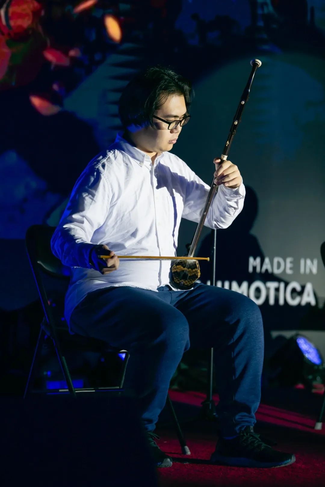 由缪淼淼与杨宇轩带来的器乐协奏《大鱼》将大家带入了民乐的世界里。古筝轻盈空灵,二胡婉转柔情,两种声音交织在一起,描绘出深邃的天空和辽阔的海域,我们仿佛听见星辰坠落海面,看见大鱼游过梦境。