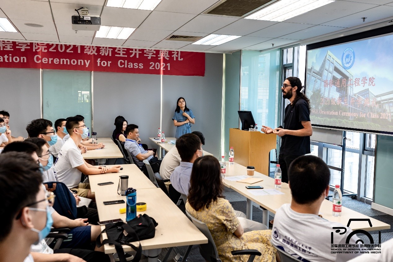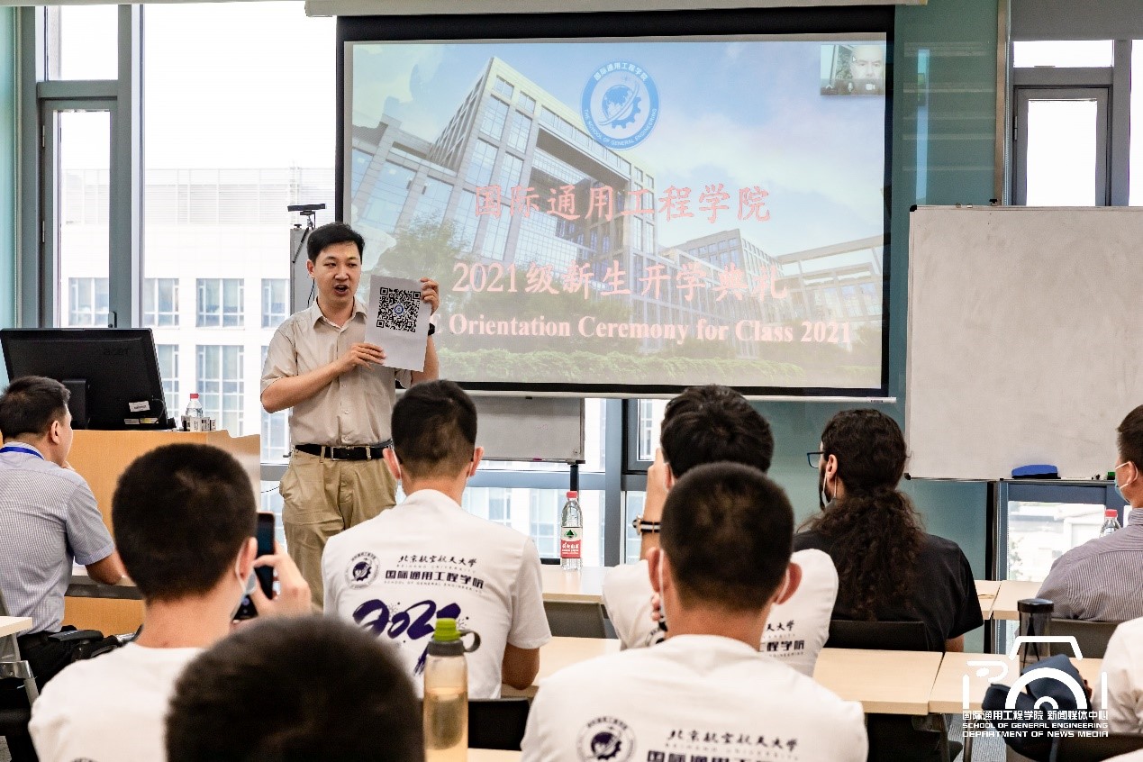 2021年9月11日下午,国际通用工程学院在新主楼D1120举行了2021级本科新生线上线下一体的开学典礼暨师生交流会。本次典礼由孙小倩副院长主持,教务处副处长金天、院长文东升、国通学院部分授课外方教师及中方教师出席了本次会议。