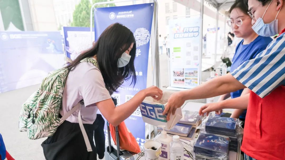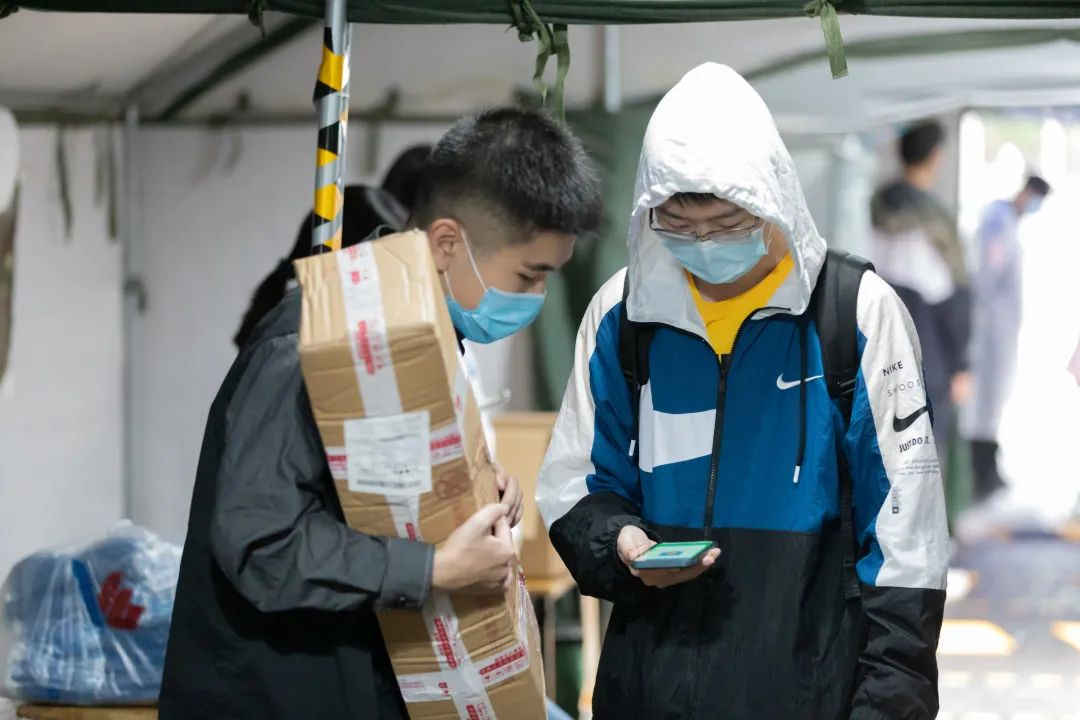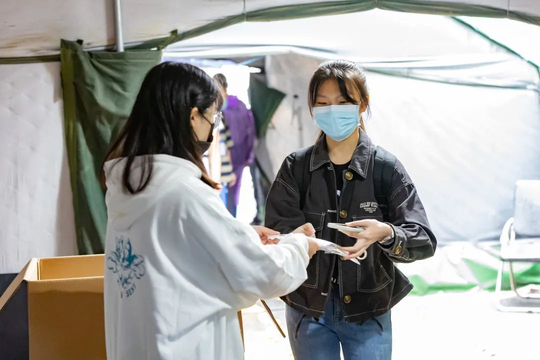 本次研究生迎新活动,国通除了本学院的新生报到点,还负责了校门口集散区的资料查验、健康检查、物资发放和秩序维护工作。