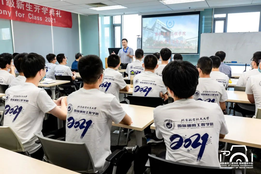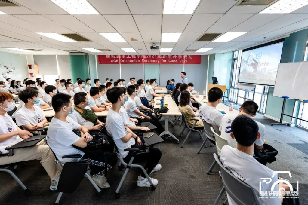 9月11日,国际通用工程学院2021级本科生开学典礼在新主楼D1120举行,院长文东升教授在会上做英文主题演讲,寄语新生。