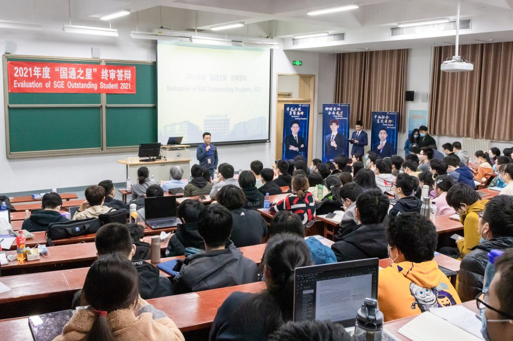 来自2018级和2019级的六名学子按照抽签顺序依次上台,从学习成绩、学科与科创竞赛、学术成果、社会实践与志愿服务、国际交流交换、文体特长、班团活动、思想品德等方面全面展示了个人的成长与收获,全程用全英文答辩。评委通过候选人申请材料及现场展示进行综合评分,最终,陈俊龙荣获2021年度“国通之星”,丁屹达、万家齐荣获2021年度“国通之星”提名。