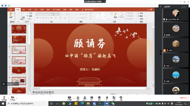 同日,张赫轩同志以“让中国‘雄鹰’展翅高飞”为主题,从爱国科学家顾诵芬的故事出发,带领全体学生党员从科学家的精神之中感悟“奋进之能”。顾诵芬院士是我国航空工业近70年进程的亲历者、参与者、见证者,始终践行新时代科学家精神,践行航空报国精神,将自己的一切都贡献给了祖国的蓝天。