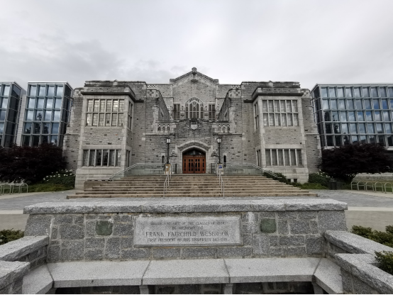 UBC的图书馆很有趣,乍一看有些像北航的图书馆。它的外形其实是寓意着一本打开来扣在桌面上的书。