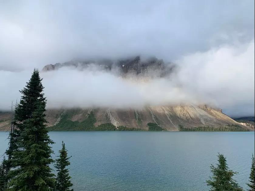 这是露易丝湖,是落基山脉最有名的湖,远处的雪山在云雾缭绕间若隐若现。