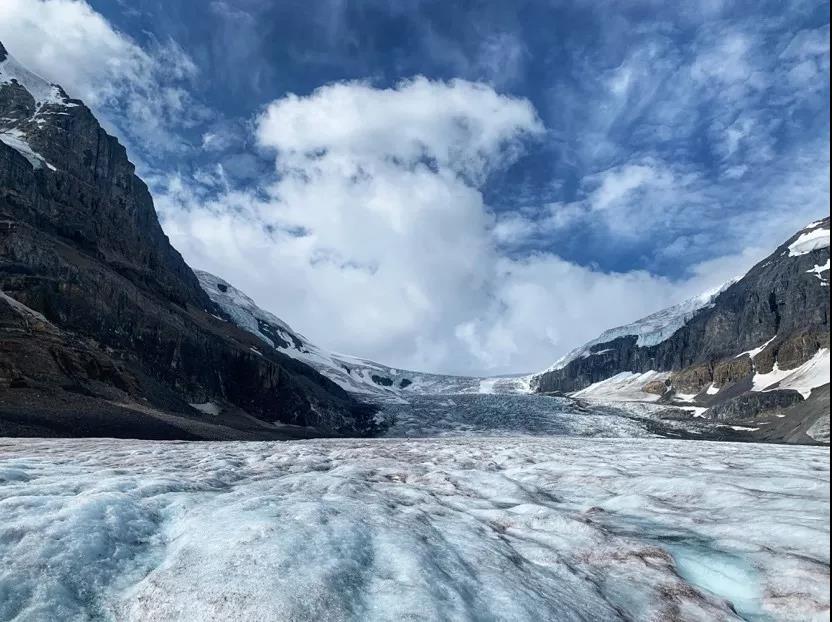 落基山脉最为壮丽的景点非哥伦比亚冰原莫属。哥伦比亚冰原是第四纪冰期的冰原遗迹。由于冰河的冰层密度极高,阳光无法折射,会呈现晶莹剔透的蓝光,在晴空下十分瑰丽。实践小队乘坐冰原大雪车登上了冰原,在感叹大自然的神奇的同时,雪车的司机告诉我们这个冰原因为气候变暖正在以前所未有的速度消融。想到大自然流传了数十万年的宝藏,可能会因为人类活动在短短几个世纪内消失,小队不由深感环境保护迫在眉睫。