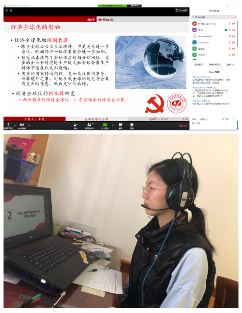 学生党支部组织开展了的“疫情下中西方抗疫道路对比”主题微党课。微党课从历史上中外面对疫情态度入手,分析了疫情对于历史进程的重要影响,并结合当下复杂多变的世界格局分享自己对于疫情下中外经济与世界格局的看法,运用马克思主义思想辩证的看待中外抗疫道路。